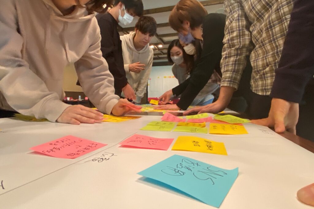 主に、チーム単位に分かれての計画立案、ディスカッションを行い、それを全員で一枚にまとめるという作業が続きます。