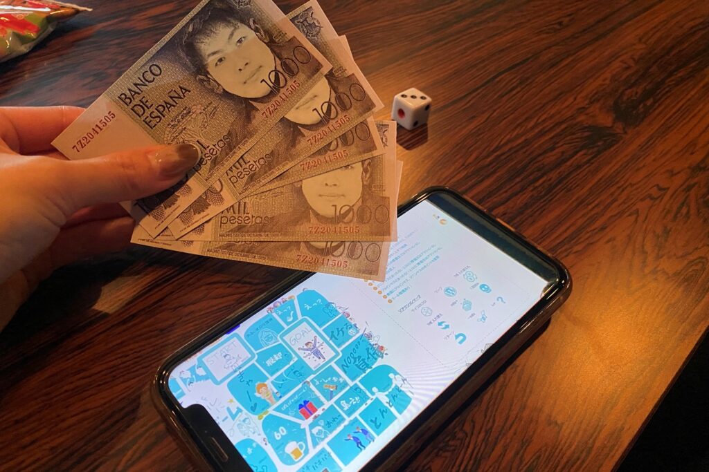 会社の歴史がすごろく化されており、仮想紙幣も用意されています。