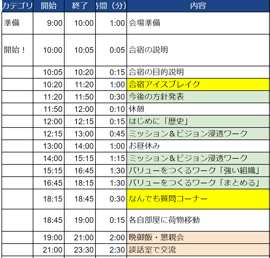 山奥と違い、1日目で「ヤバい…」と思ったら脱走できる環境です。明日、無事に全員が会議室に集合できますように。そして、少ししんどかった時間も、数か月、数年後には「合宿をやっておいてよかった」という結果に換えられますように。