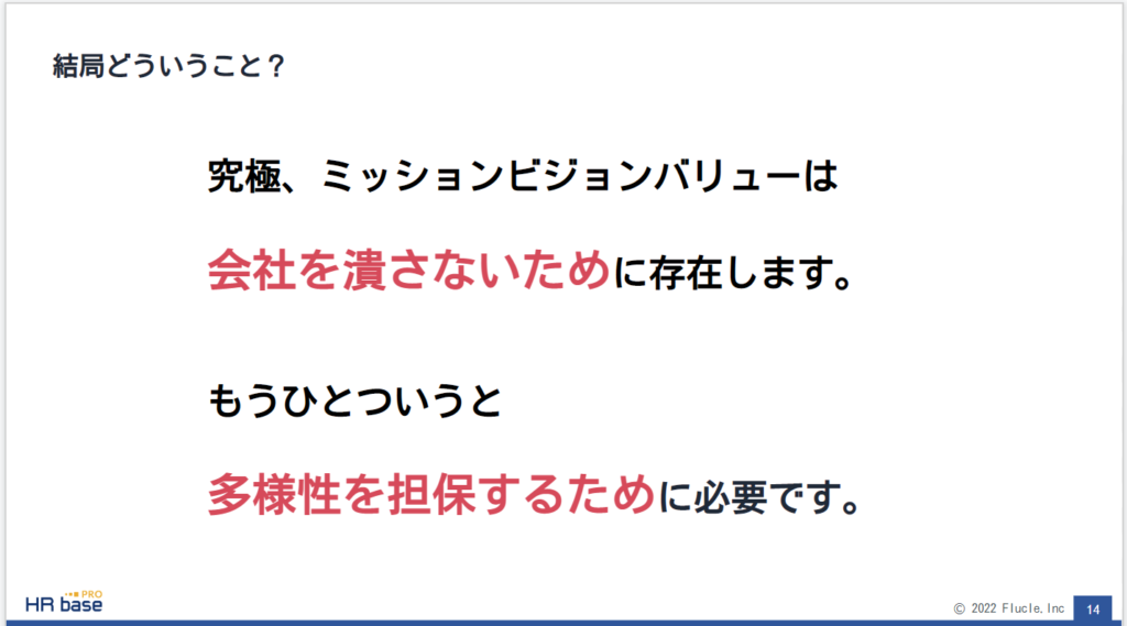 従業員も自ら選んでその「会社」に属している以上、会社の存続に対して責任を負っています。だからこそ成功確率が高いノウハウの導入と実践をしていこう、というのがミッションビジョンバリューを取り入れている企業の総意ではないでしょうか。
